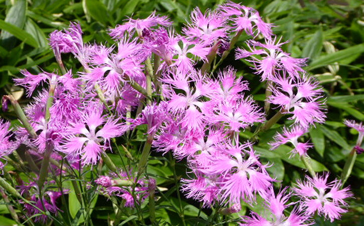 5月 カワラナデシコ(河原撫子) 山野の草原や河原に生える多年草で秋の七草の一つです。古名の「常夏(とこなつ)」が示すように 花の盛期は夏で、秋の七草では一番早く花が咲きます。角川庭園には秋の七草ではこのほかにキキョウ・オミナエシ・フジバカマ・ハギ・ススキ(オバナ)がありクズはありません 撫子 秋 大和撫子 川原撫子 撫子や死なで空しき人のむれ 永田耕衣 撫子やただ滾々と川流る 山口青邨 岬に咲く撫子は風に強ひられて 秋元不死男 5月 シラン(紫蘭)前の記事 4月 ハナミズキ(花水木)次の記事