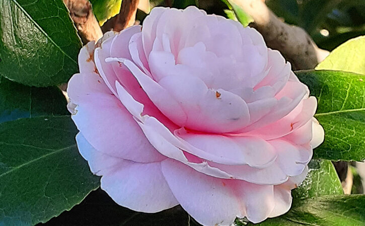 ツバキ(椿)は北半球の熱帯や亜熱帯を中心に広く分布しており、日本にはヤブツバキと日本海側の山地にユキツバキが野生している。江戸時代には園芸種として人気を博し多くの品種がつくられた。茶の湯でも侘助ツバキが喜ばれている。角川庭園にはオトメツバキ(八重咲・桃色)・シロヤブツバキ・シロワビスケ・タロウカジャ(桃色)が正門から延段にかけて植えられている。また同じ仲間のカンツバキ・サザンカが来園者の目を楽しませる。さらにチャノキやヒサカキもツバキの仲間である。