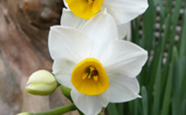 スイセンは全体に強い毒性があり、山菜摘みなどでニラと間違えないように要注意である。スイセンは白または黄色の花を咲かせるが、赤・ピンク・八重咲など世界的に品種改良が進んでいる。角川庭園では、正門近くのバショウの下にニホンスイセン、庭園中央部のサルスベリの下にラッパスイセンが植えられている。
