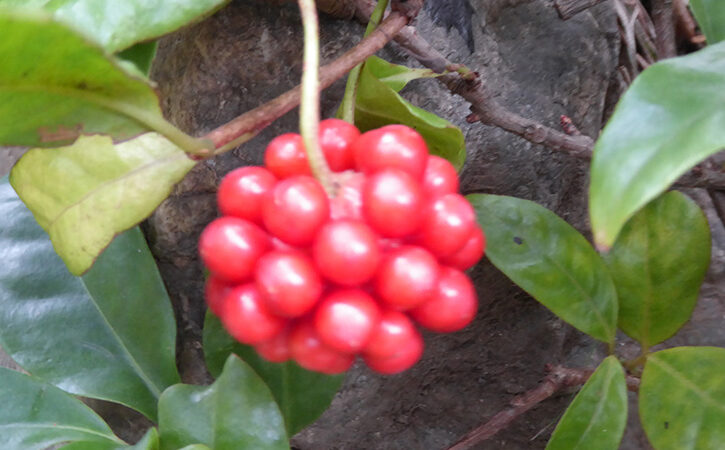 9月 サネカズラの実(実葛) 山野に生えるつる草で8月頃に直径1.5cm位の淡黄色の花が垂れ下がって咲きます。冬に赤い果実の集まった球形の集合果をつけます。この果実が目立ちつる性なので実葛(サネカズラ)の名があります。樹皮から取れる粘液を整髪料として使ったのでビナンカズラの別名もあります。 南五味子(さねかずら) 秋 実葛 地震にも耐へし玉垣さねかづら 森田 峠 年ちがふ尼二人住むさねかづら 阿波野青畝 あだし野の陽はさらさらとさねかづら 鍵和田 秞子 10月 フジバカマ前の記事 9月 ホトトギス(杜鵑草)次の記事