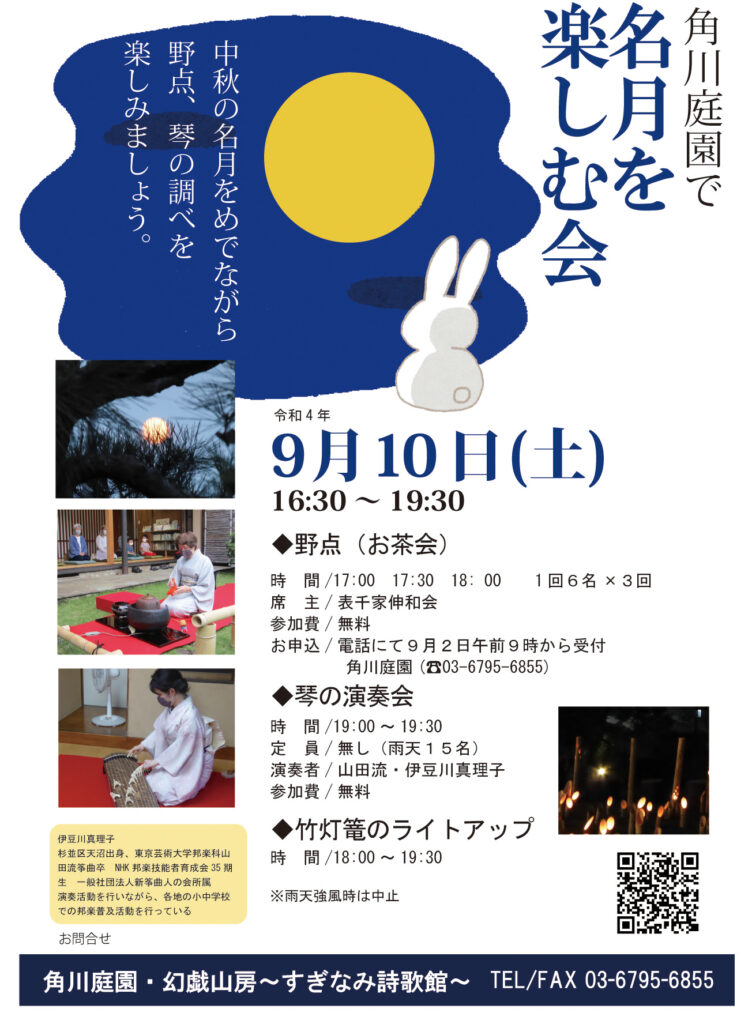 中秋の名月をめでながら、野点、琴の調べを楽しみましょう