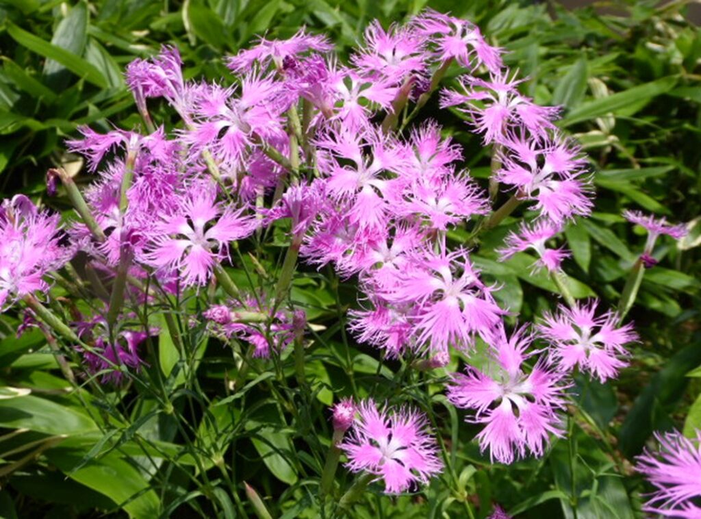 庭園の詩歌室の前にカワラナデシコが咲き始めました。