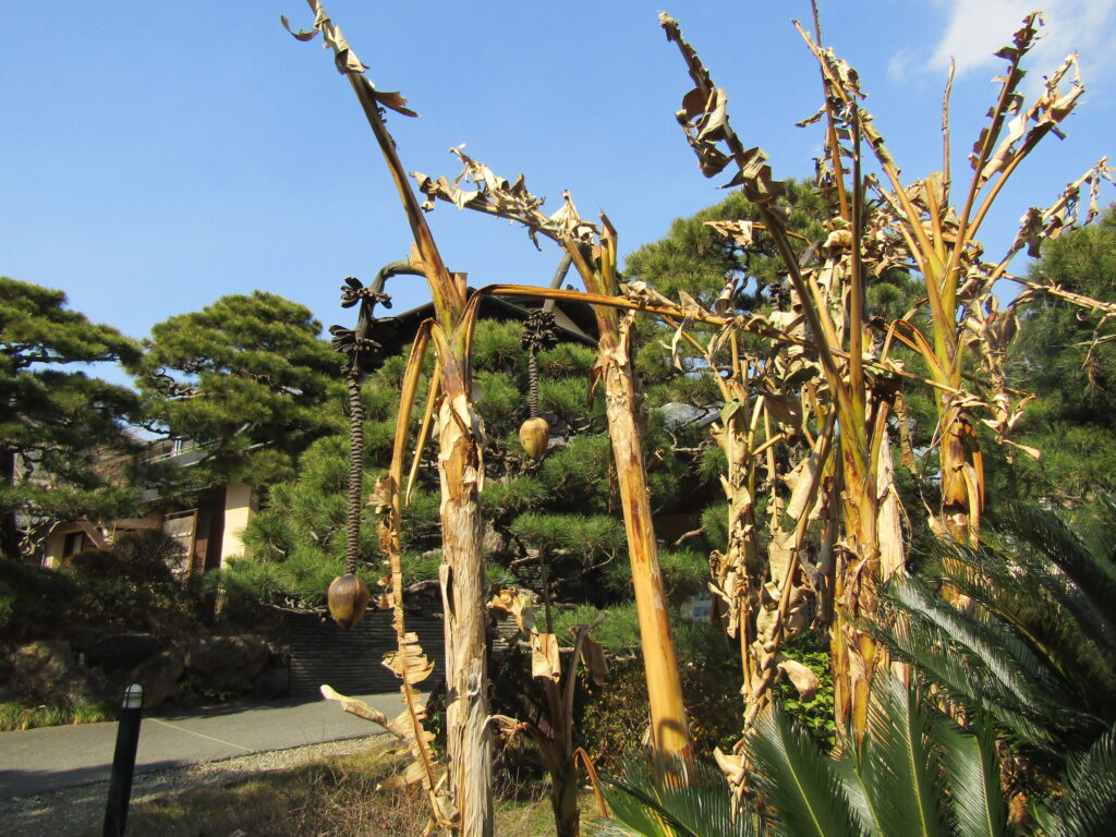 玄関前の枯れたバショウも風情があります。バショウは日本最大の草と